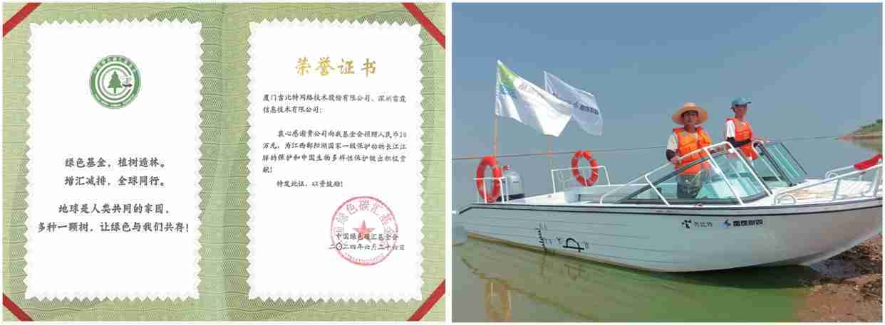 2024年6月,,公司携手中国绿色碳汇基金会,,,开展“保卫江豚”公益活动,,向基金会捐赠人民币20万元用于采购全新巡逻艇,,以支持鄱阳湖长江江豚保护工作。。。。截至2024年底,,公司捐赠的资金与巡逻艇已经有效协助巡护队对鄱阳湖1,667头江豚开展保护行动。。。。