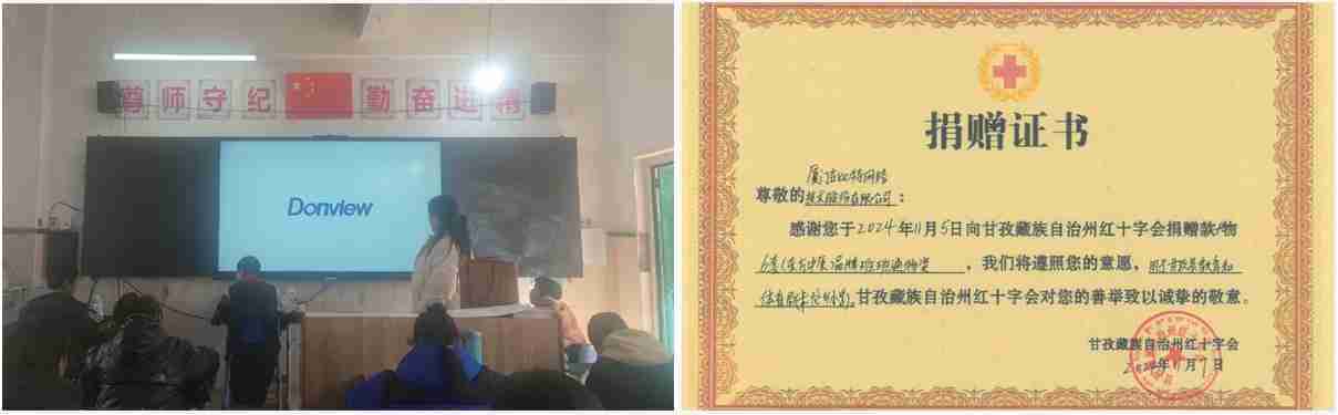 2024年10月,,公司向四川省甘孜藏族自治州卡龙乡小学6个班级共208名学生捐赠了6台“班班通”多媒体教学设备,,,,捐赠总价值8.88万元,,,,有效提升了该学校的数字化教学水平,,,为学生提供了更优质的学习环境。。。。