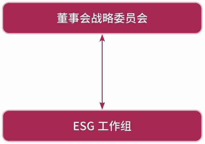 公司根据《董事会议事规则》与《董事会战略委员会工作规则》的要求,,,明确规定董事会战略委员会的职责包括监督检查公司ESG工作组的执行情况并适时提出指导意见,,,,审阅公司ESG报告、、、ESG相关制度及其他与ESG相关的重大事项,,,,对公司ESG治理进行研究并向董事会提供决策咨询建议(包括ESG治理愿景、、、目标、、、政策等)。。。。公司ESG工作组主要负责制定ESG工作执行计划,,,协调ESG风险与机遇的评估管理。。。