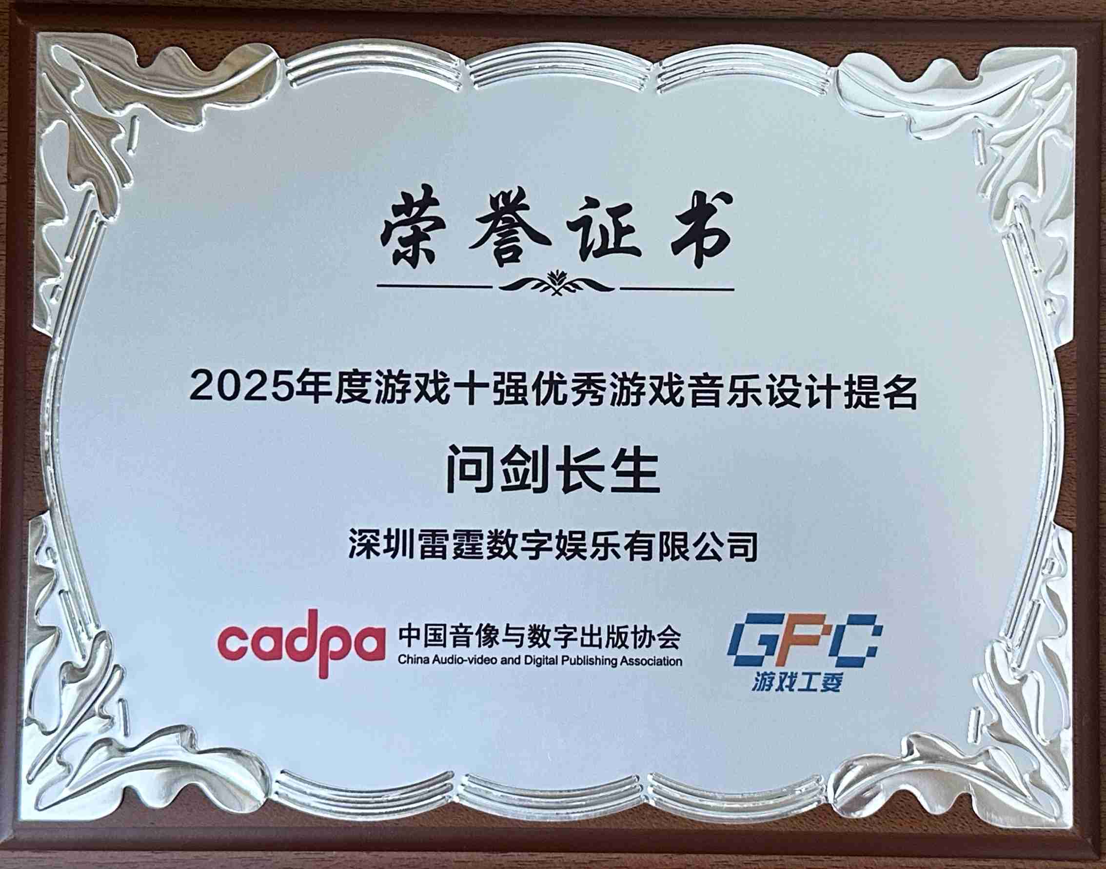 公司坚持走精品化道路,,打造与时代精神相契合、、与海内外大众诉求相契合、、、与创作实践相契合的游戏产品,,,倡导构建具有中华文化特色、、、、弘扬中华美学精神的产品理念,,切实提升游戏文化内涵的传播力影响力。。如此次荣获“2025游戏十强年度优秀游戏音乐设计”提名奖的公司自研产品《问剑长生》以音筑境,,,以乐传情,,其音乐融合东方传统韵味与现代审美,,构建独特听觉世界,,,运用古筝、、笛子、、箜篌等传统乐器与现代管弦乐,,,塑造灵动古风仙侠氛围。。。