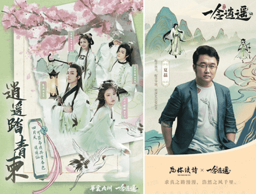 在游戏之外,,《一念逍遥》一直致力于打造国风修仙原创IP,,,以音乐、、、、漫画,,,,小说等衍生内容去延展丰富游戏内容。。。上线以来,,整整做了十首歌,,,,小说应该也是喜马拉雅平台今年游戏品类小说收听量Top1的作品;而在营销的内容传播上,,《一念逍遥》也一直秉承比较国风的基调,,,传递诗词、、、、文化内涵,,,如如清明节定制汉服合作,,,传递中国传统的清明踏青、、清明诗会文化。。