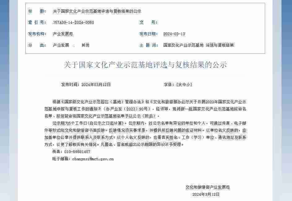 新一批国家文化产业示范基地公示,,,J9.COM成功入围