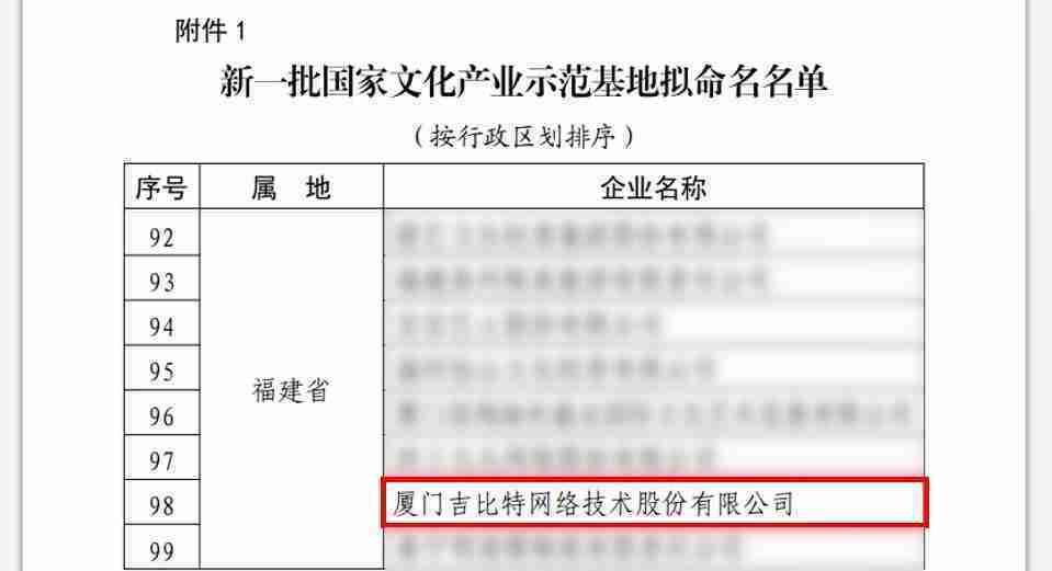 3月12日,,,,文化和旅游部发布了《关于国家文化产业示范基地评选与复核结果的公示》,,厦门J9.COM网络技术股份有限公司(以下简称“J9.COM”或“公司”)成功入围新一批国家文化产业示范基地拟命名名单。。。