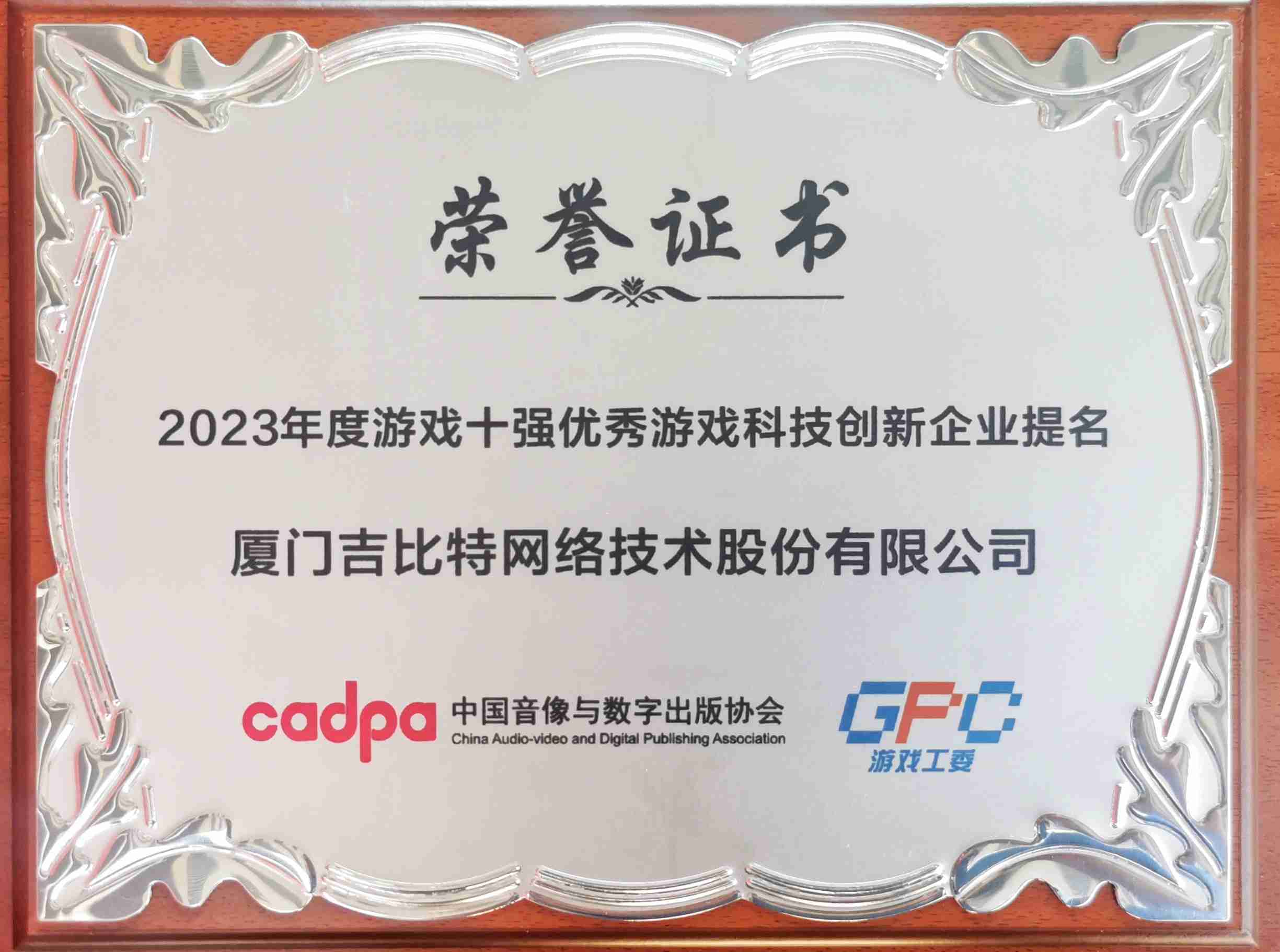 12月14日,,由中国音像与数字出版协会主办,,中国音数协游戏工委、、、中国游戏产业研究院承办的“2023游戏十强”评选结果正式发布。。“游戏十强”在我国游戏产业界享有“中国第九艺术封神榜”美誉,,,其评选秉承公开、、公平、、、公正的原则,,因其代表性、、影响力、、、、公信力被誉为中国游戏产业最高奖项。。。继2022年度入围后,,,J9.COM今年再次获得“优秀游戏科技创新企业”提名,,,,研发创新实力获得肯定。。。