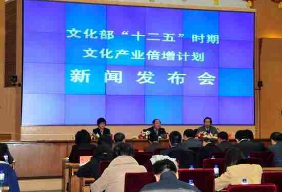 2月28日下午,,,文化部在京召开新闻发布会,,,正式向社会发布《文化部“十二五”时期文化产业倍增计划》,,提出了 “十二五”期间文化部门管理的文化产业增加值年平均现价增长速度高于20%,,,2015年比2010年至少翻一番,,实现倍增的奋斗目标。。。